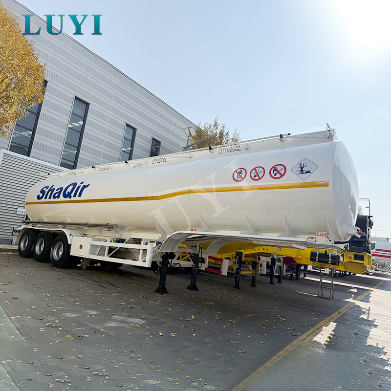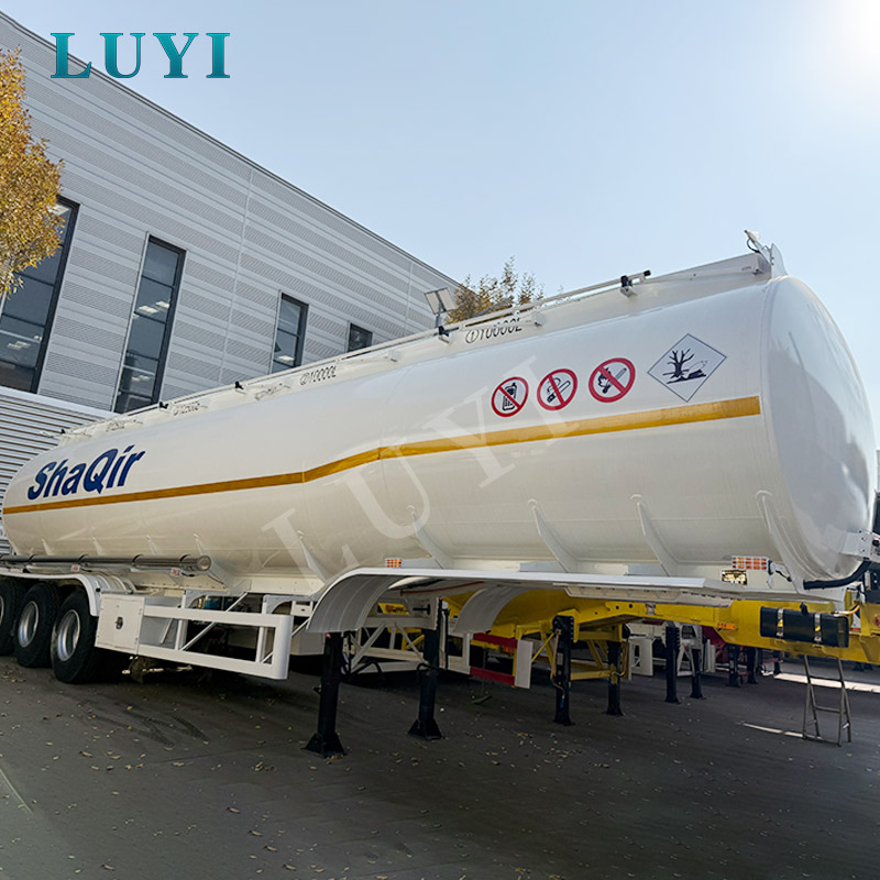 White fuel tank semi-trailer for transporting diesel, gasoline, petroleum, and fuel tank semi-trailer