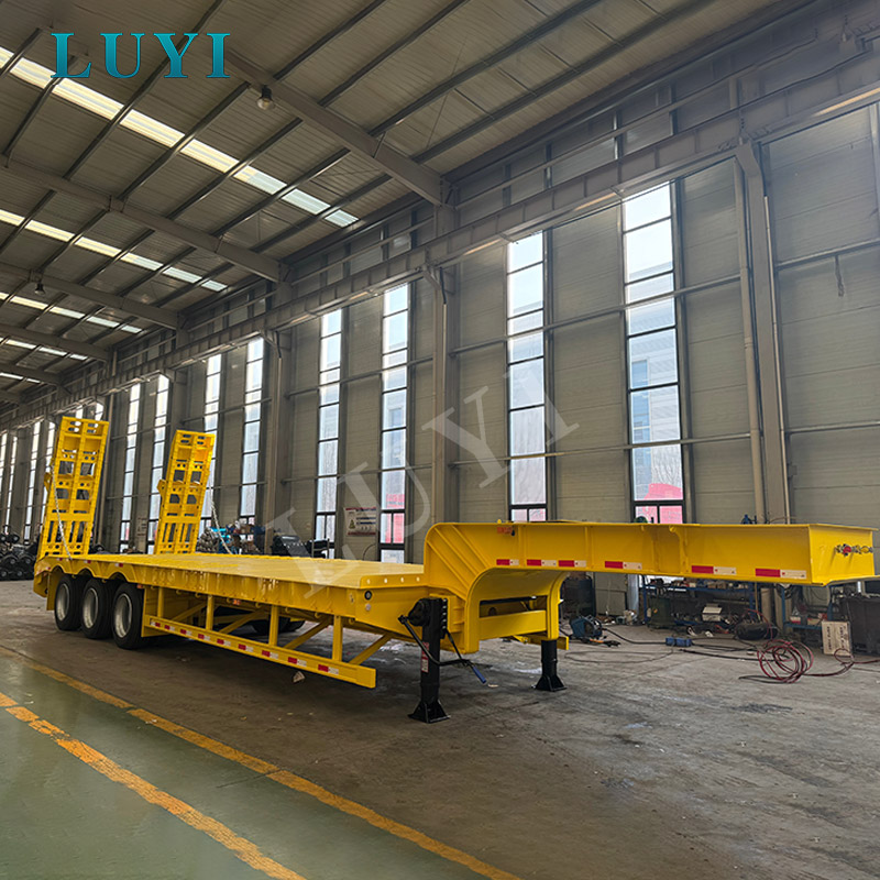Factory direct-sale 3-axis low flatbed semi-trailer for transporting 60-ton heavy machinery - non-detachable swivel-type lowbed semi-trailer
