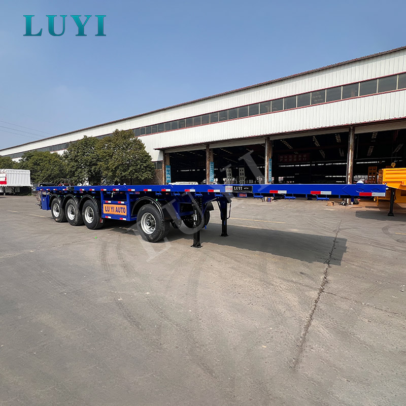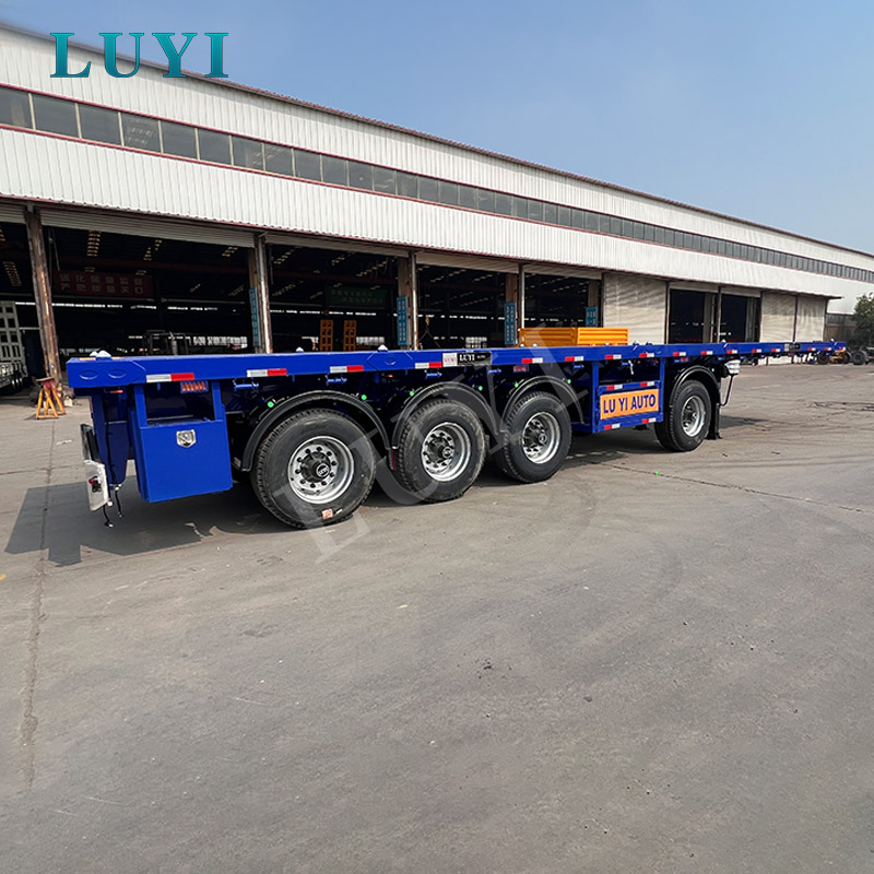 4-axle flatbed semi-trailer for transporting 40-foot containers Customizable blue flatbed semi-trailer