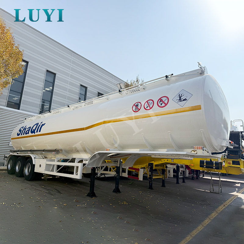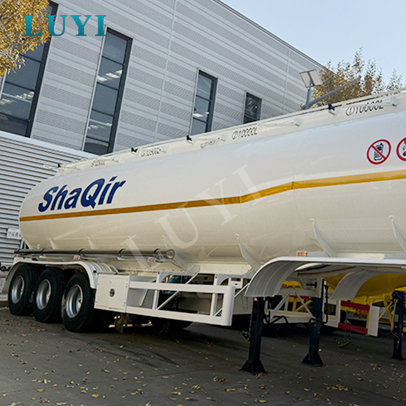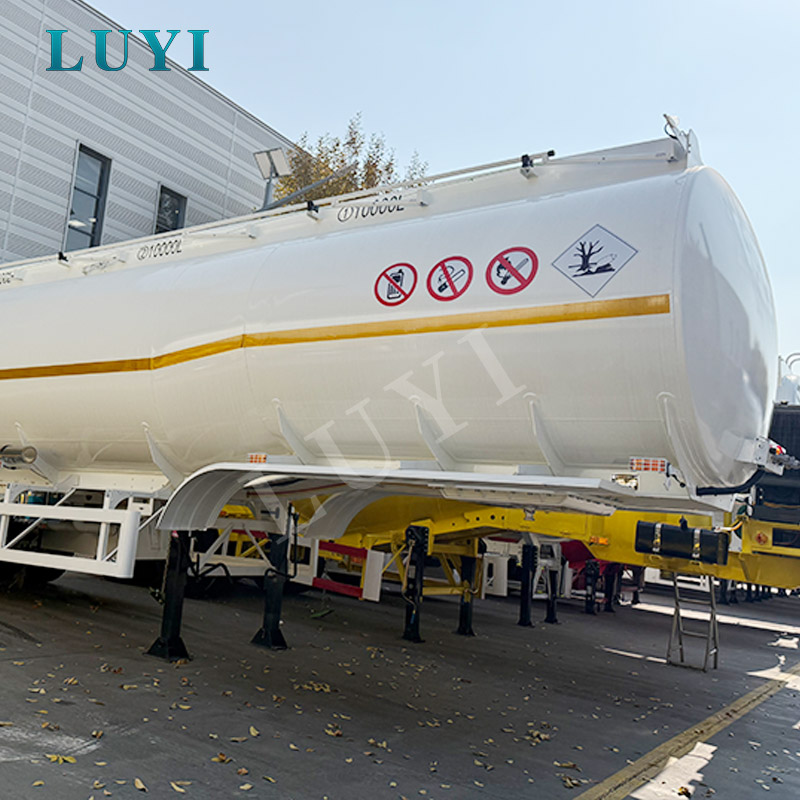 White fuel tank semi-trailer for transporting diesel, gasoline, petroleum, and fuel tank semi-trailer