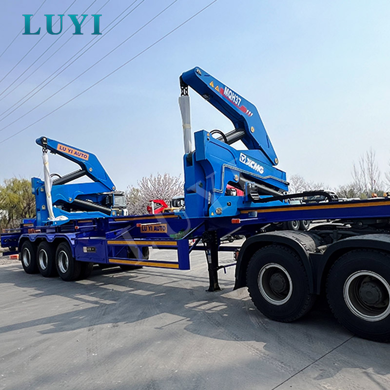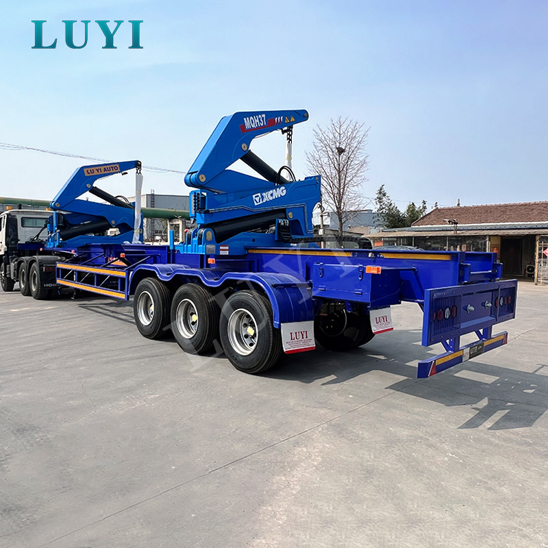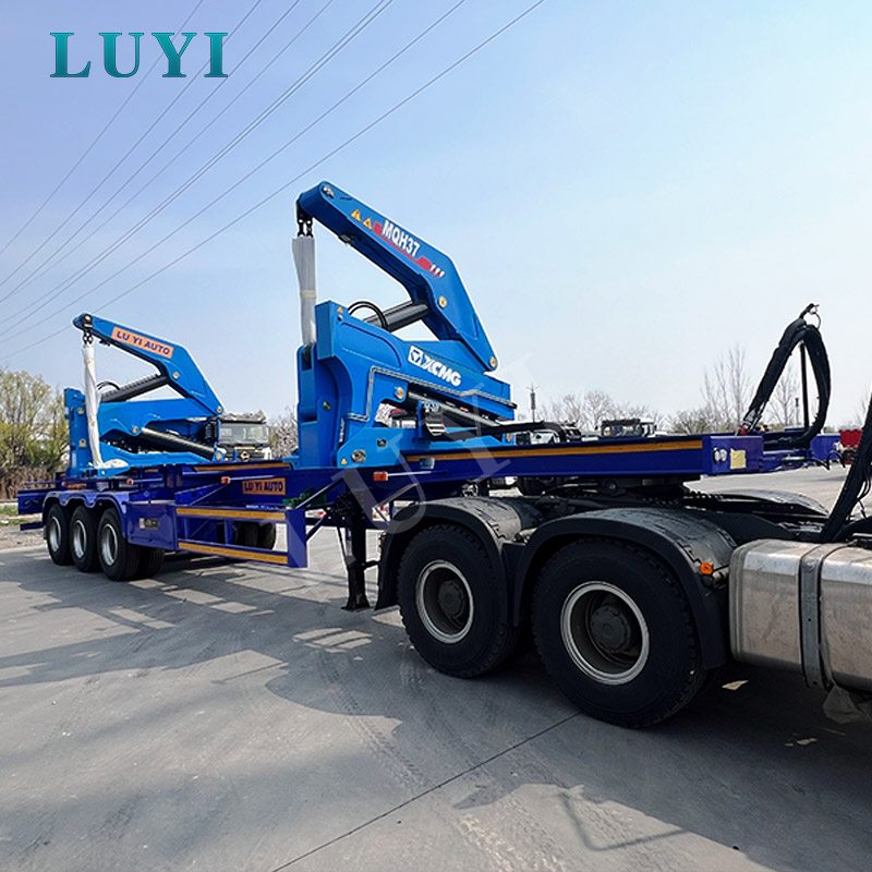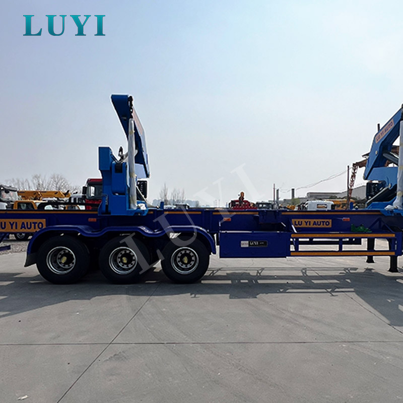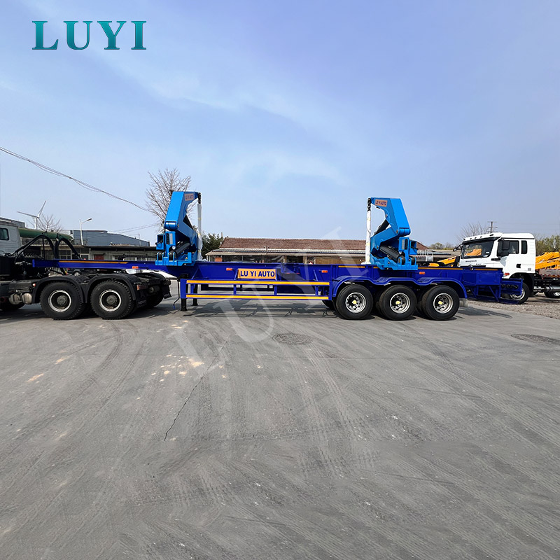 3-axis blue side-loading semi-trailer for transporting construction materials
