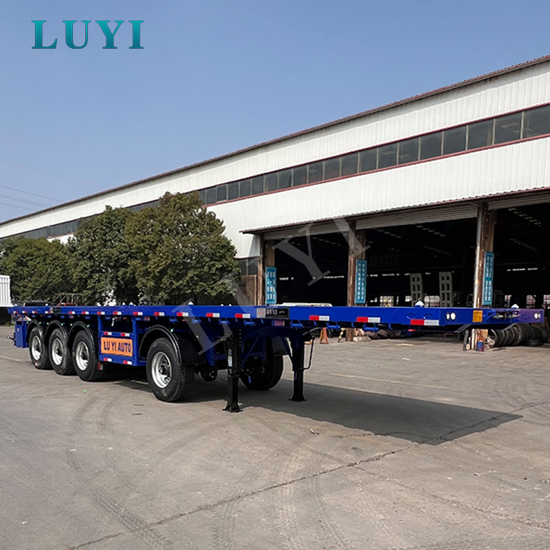 4-axle flatbed semi-trailer for transporting 40-foot containers Customizable blue flatbed semi-trailer